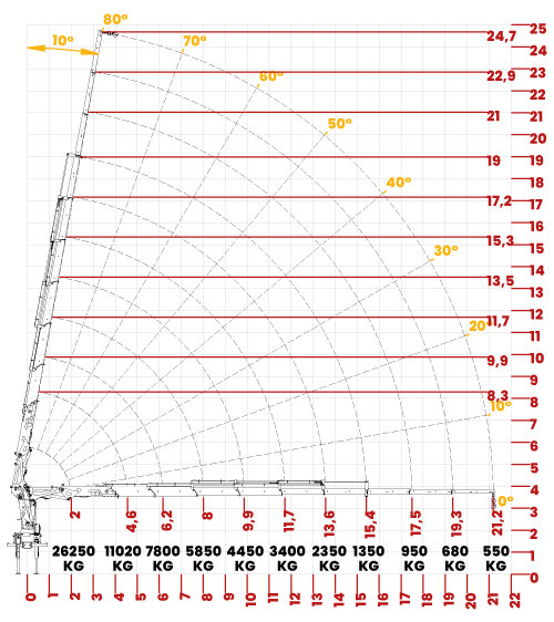 Equipado com até 6 lanças hidráulicas e 3 manuais. Com um ângulo de elevação de 80° e capacidade máxima de carga de 11.020 kg, proporciona robustez e precisão em cada elevação. Além disso, seu ângulo de giro de 360° e a abertura das sapatas de 7.208mm garantem uma ampla área de trabalho, tornando-o essencial para aplicações exigentes onde segurança e eficiência são primordiais.